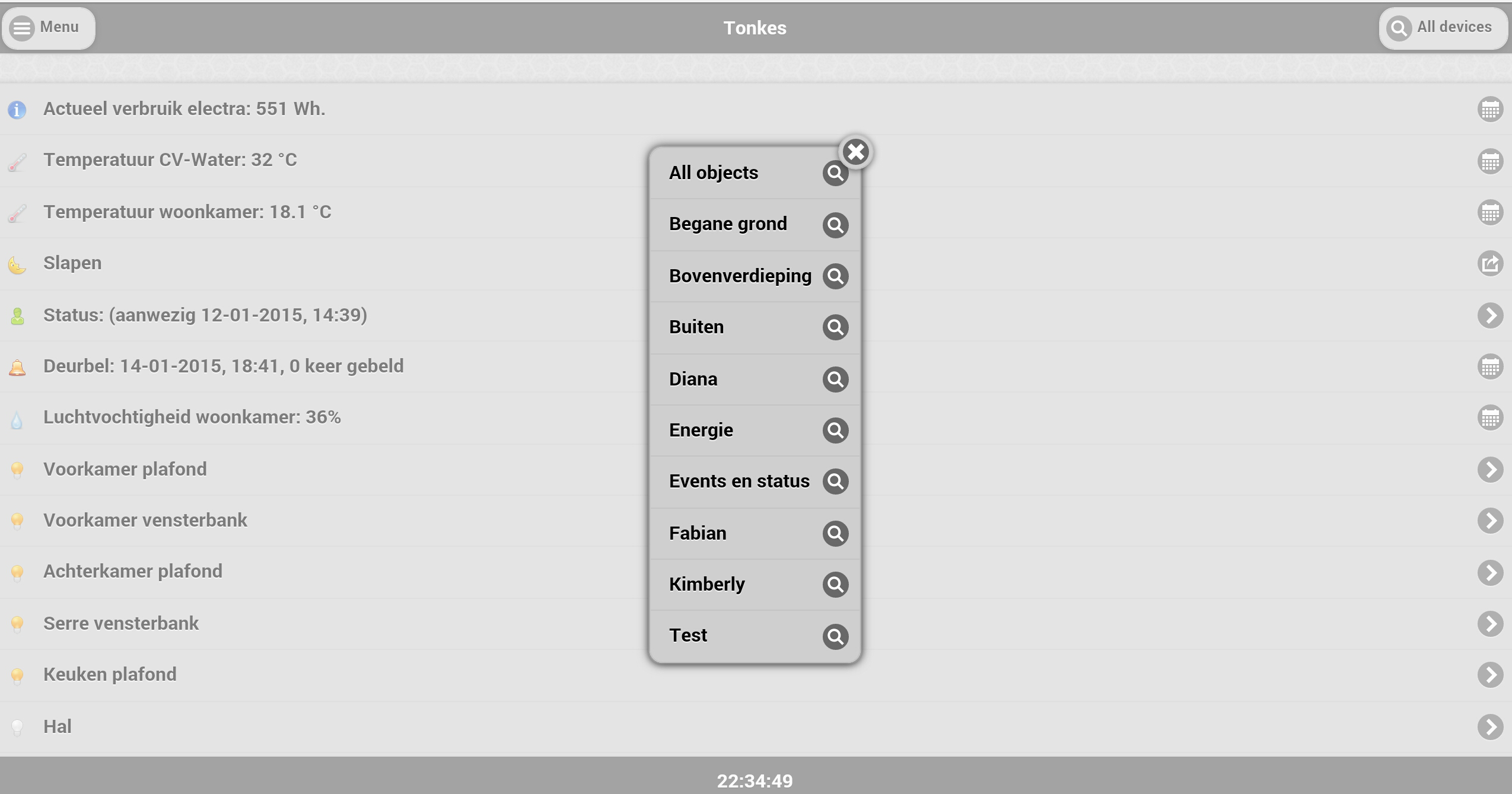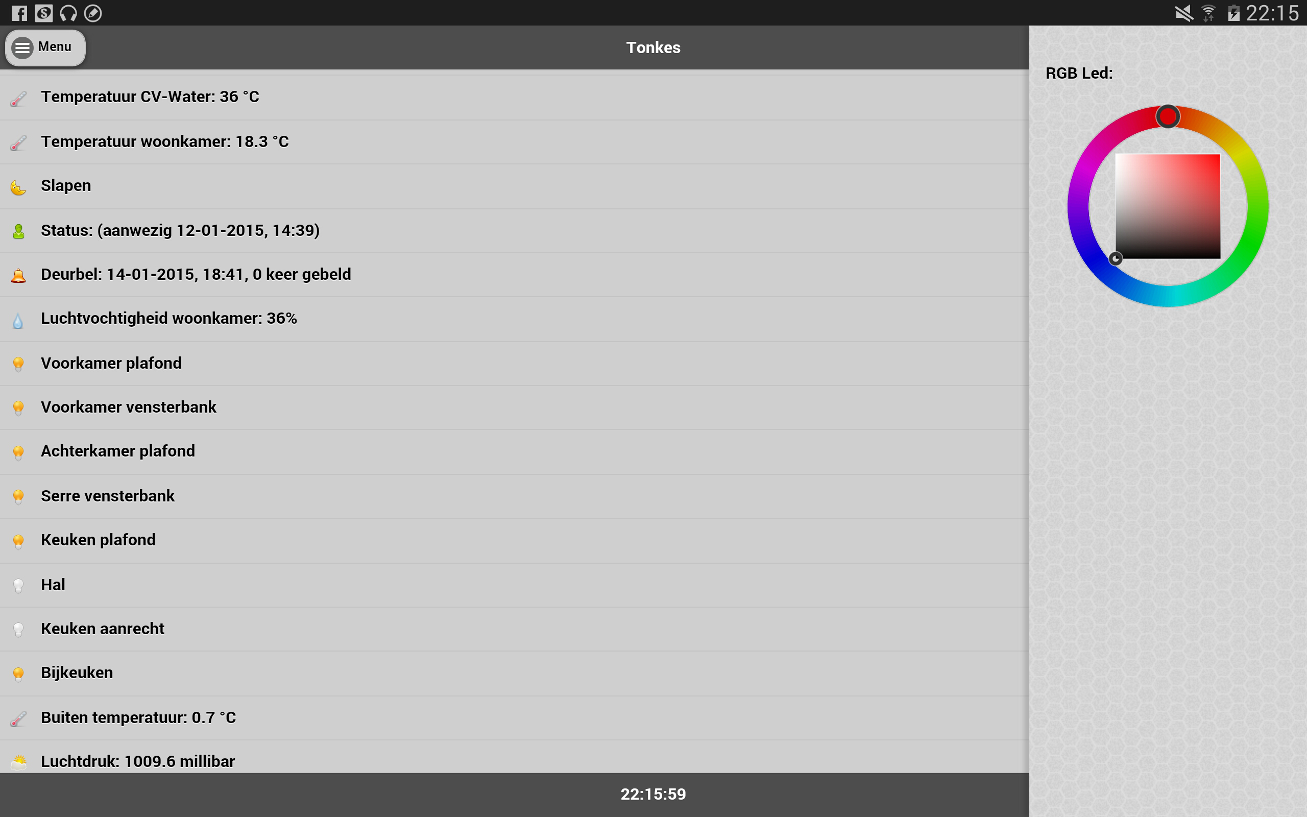 WebApp: er is een API ontwikkeld die op de server draait en de nieuwe WebApp praat volledig tegen deze API. Er zijn nog veel wensen en ideeën voor verbetering, maar in basis is het klaar. Dit weekeinde gaat hij in GitHub en de publieke server nodo-domotica.nl is actueel. Hulpvraag: wie kan de basisdocumentatie maken in de wiki.